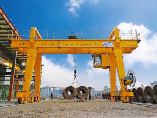 門式起重機(jī)(龍門吊)是一種用于室外的貨場、料場貨、散貨的裝卸作業(yè)的起重機(jī)。它的金屬結(jié)構(gòu)像門形框架,可以在地面的軌道上行走,主梁兩端可以有懸臂。