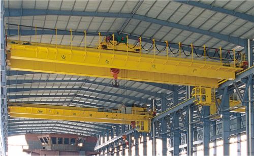 QD通用橋式起重機(jī)是一種常見的起重設(shè)備,它可以沿著廠房行車梁上的軌道縱向移動(dòng)、小車橫向移動(dòng)和吊鉤升降,實(shí)現(xiàn)各種物料的吊運(yùn)。它的結(jié)構(gòu)主要由橋架、大車運(yùn)行機(jī)構(gòu)、小車、電氣設(shè)備等組成。